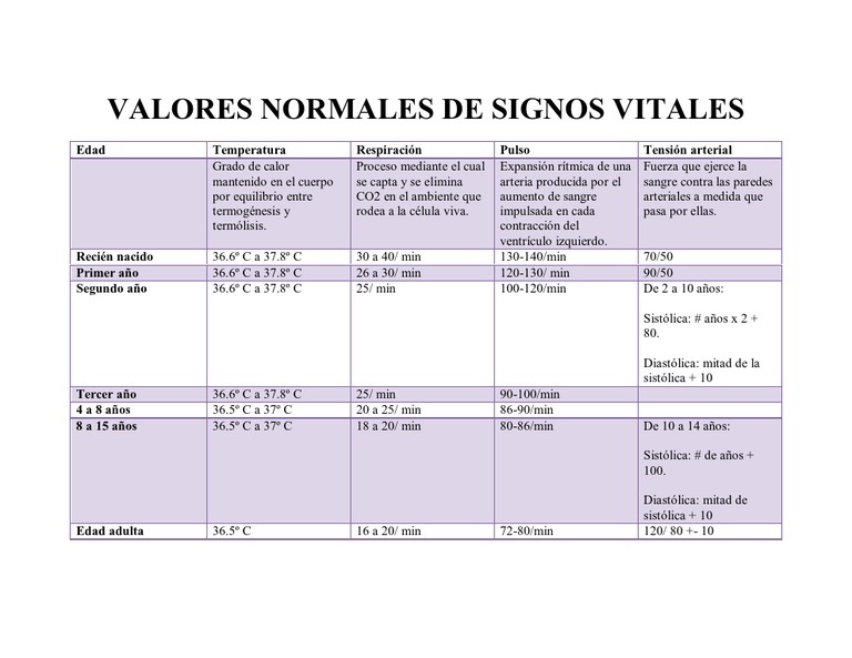 Un punto de interés para todos nosotros es el conocimiento de que todos nuestros signos vitales y los parámetros Fisiológicos de nuestro cuerpo tienen un cierto límite o rango, así por ejemplo podemos decir que nuestros signos vitales normales en reposo pueden variar según nuestra Edad pero en general todos están dentro de un rango de valores promedio como se puede ver en la siguiente tabla.